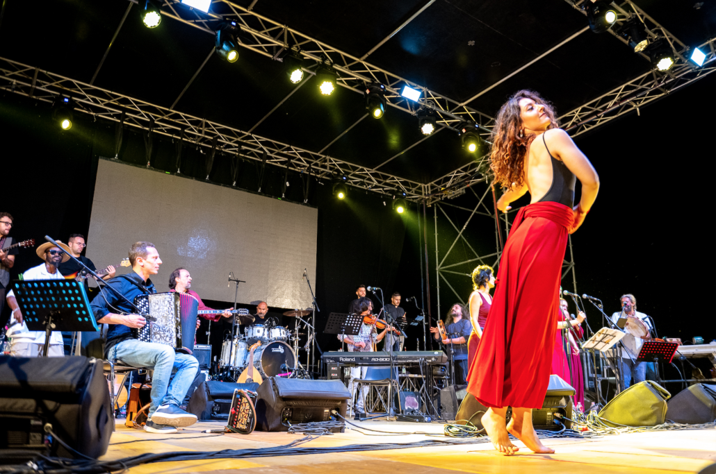 Il progetto Orchestra Popolare del Saltarello nasce da un’operazione di ricerca e rivalutazione della tradizione musicale abruzzese. Più nello specifico si tratta di ricostruire in musica il percorso dei tratturi lungo il quale si è sviluppato e propagato il celebre “Saltarello” dandogli una veste del tutto moderna e innovativa che permetta al grande pubblico di conoscere la musica della nostra amata terra senza mai perdere di vista l’aspetto tradizionale. L’ideatore del progetto è il musicista Danilo Di Paolonicola, autore delle rielaborazioni e trascrizioni. Teramano di origine, considerato tra i migliori fisarmonicisti e organettisti del mondo. Vincitore dei più importanti premi internazionali dedicati alla fisarmonica e all’organetto, ideatore e progettista ed endorsement di strumenti musicali per le più grandi aziende del settore della fisarmonica come Roland e Paolo Soprani, compositore ed arrangiatore, docente di fisarmonica diatonica presso il Conservatorio di Santa Cecilia a Roma e il Conservatorio “A. Casella” de L’Aquila, concertista di fama mondiale, è un artista poliedrico e la sua attività comprende anche la ricerca del mondo delle tradizioni abruzzesi. L’Orchestra Popolare del Saltarello propone un repertorio di brani popolari abruzzesi, che va dalle canzoni più rappresentative della nostra tradizione alle Saltarelle, Spallate e Ballarelle utilizzando un organico formato da 10 straordinari musicisti e un coinvolgente corpo di ballo che insieme vi faranno ripercorrere un viaggio lungo le antiche vie della Transumanza. L’organico è formato da Organetto, Fisarmonica, una sezione vocale, una sezione di organetti e fisarmoniche, chitarre, mandolino, zampogne, flauti, tamburelli, basso e batteria che interpretano il repertorio di tradizione abruzzese con originalità e freschezza.